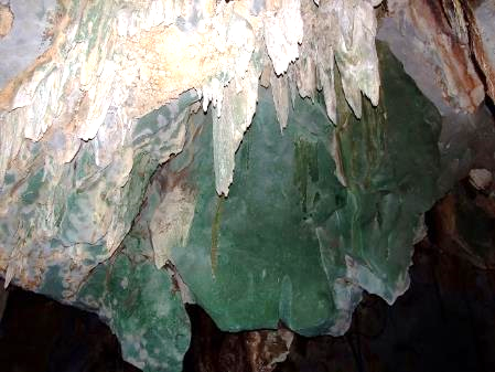 ตลอดช่วงฤดูฝนความชุ่มชื้นจะทำให้โถงถ้ำเต็มไปด้วยประติมากรรมหินย้อยสีเขียวเข้มราวกับอัญมณีมรกตอันงดงามลอยเด่นอยู่เบื้องหน้า