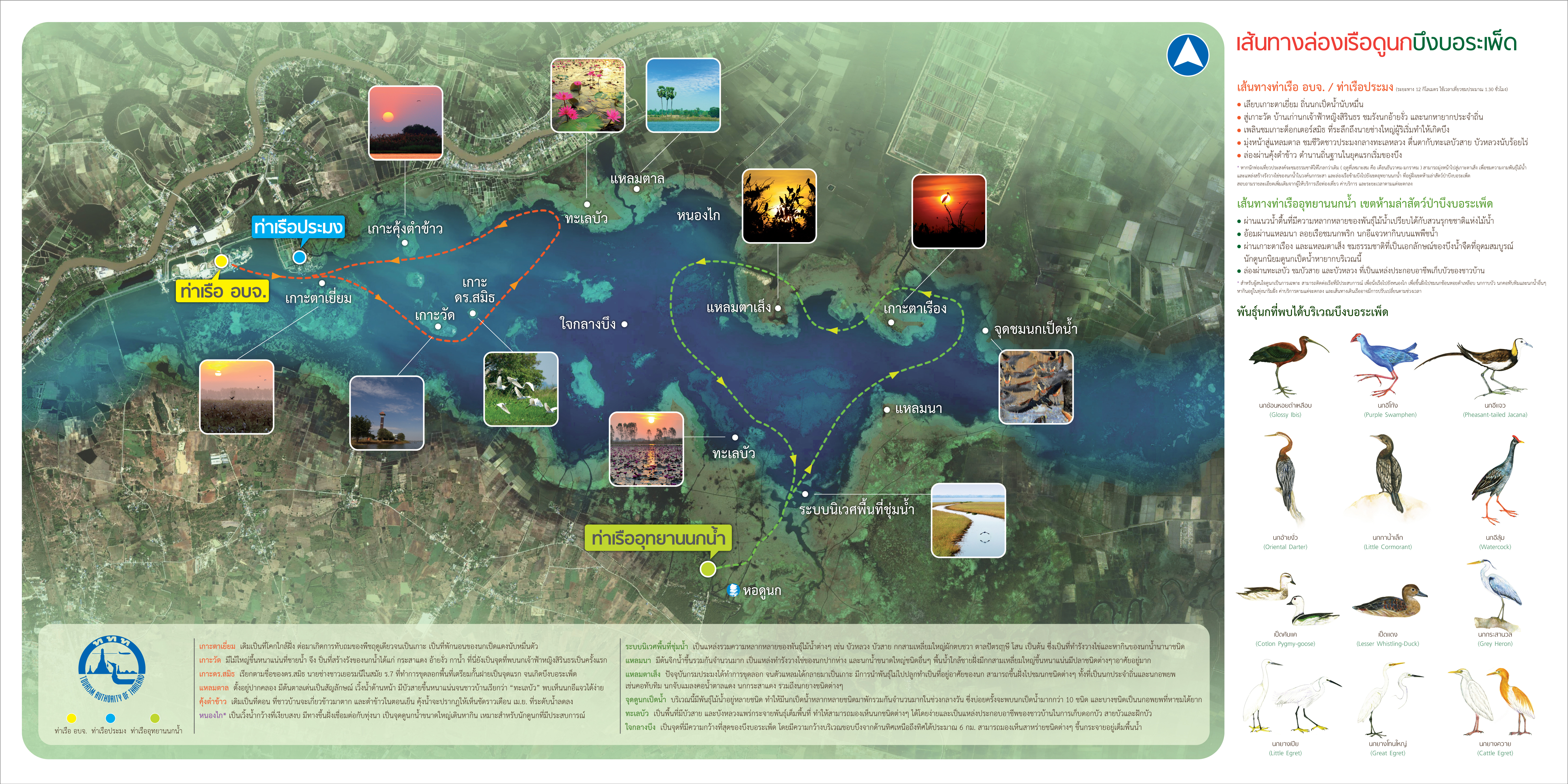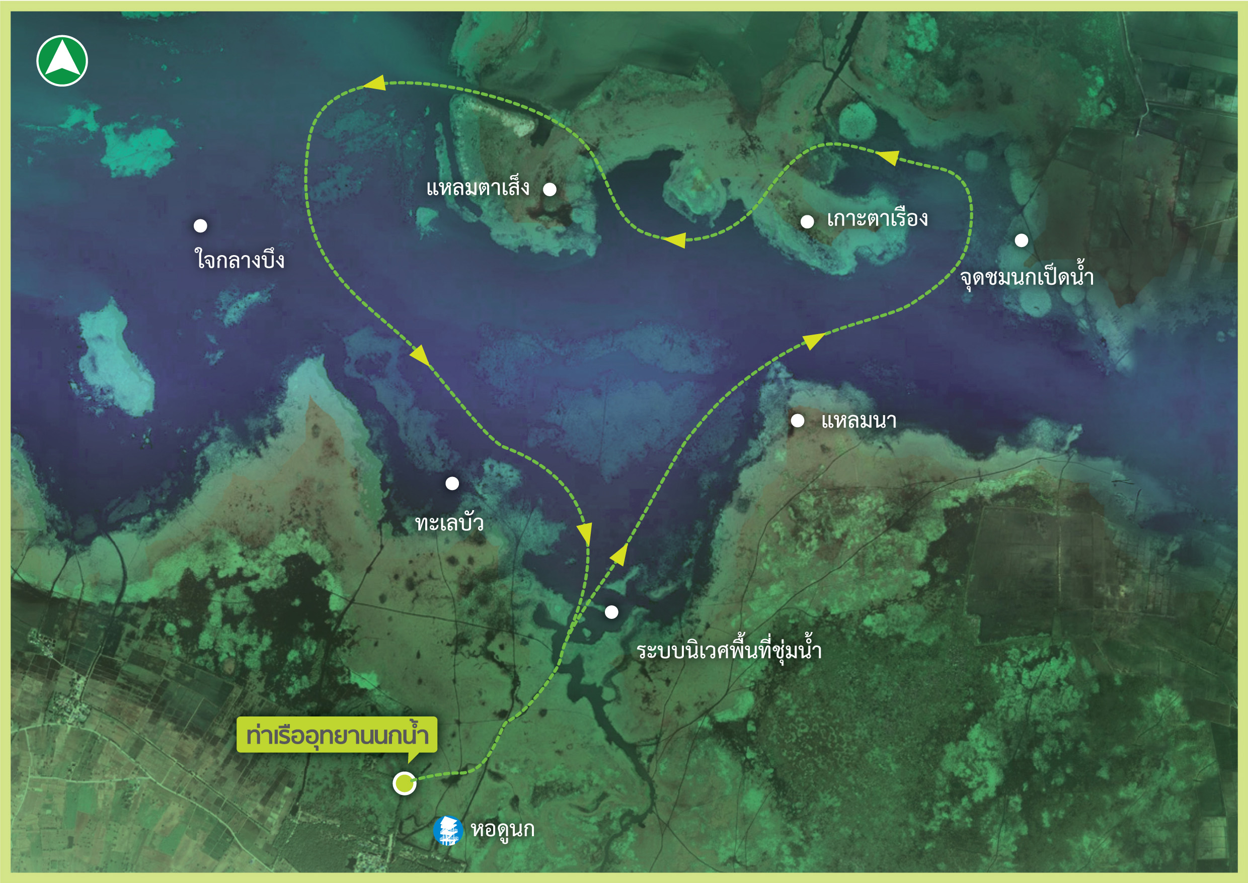 แผนผังเส้นทางล่องเรือดูนกบึงบอระเพ็ด