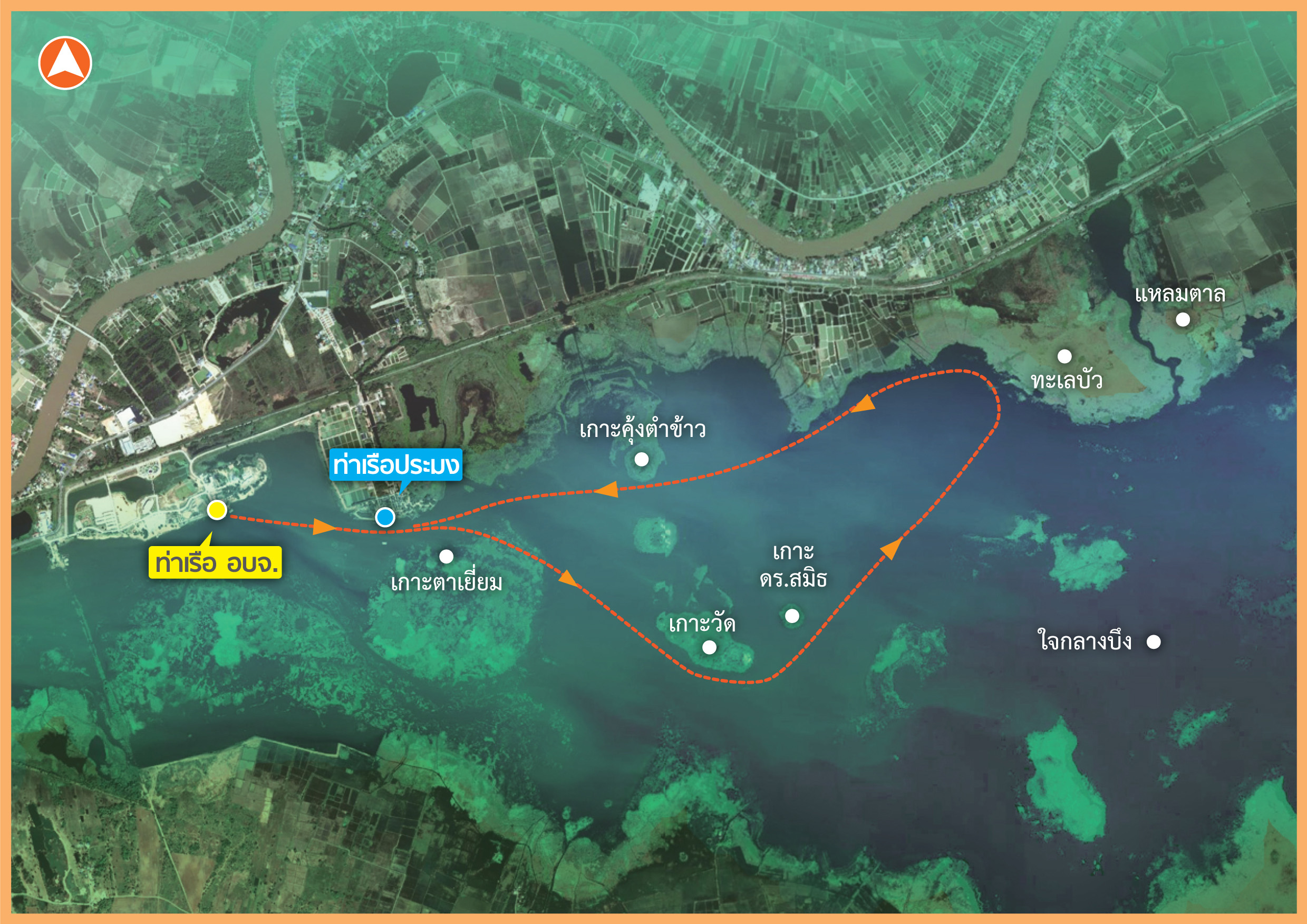 เส้นทางท่าเรือ อบจ. / ท่าเรือประมง (ระยะทาง 12 กิโลเมตร ใช้เวลาเที่ยวชมประมาณ 1.30 ชั่วโมง)